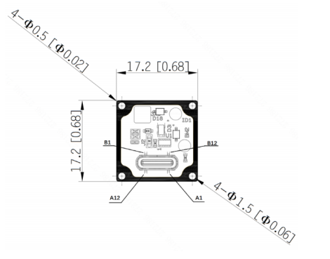 17,3 мм*17,3 мм*10,8 мм (без хвостовой пластины хвостового кольца объектива) |